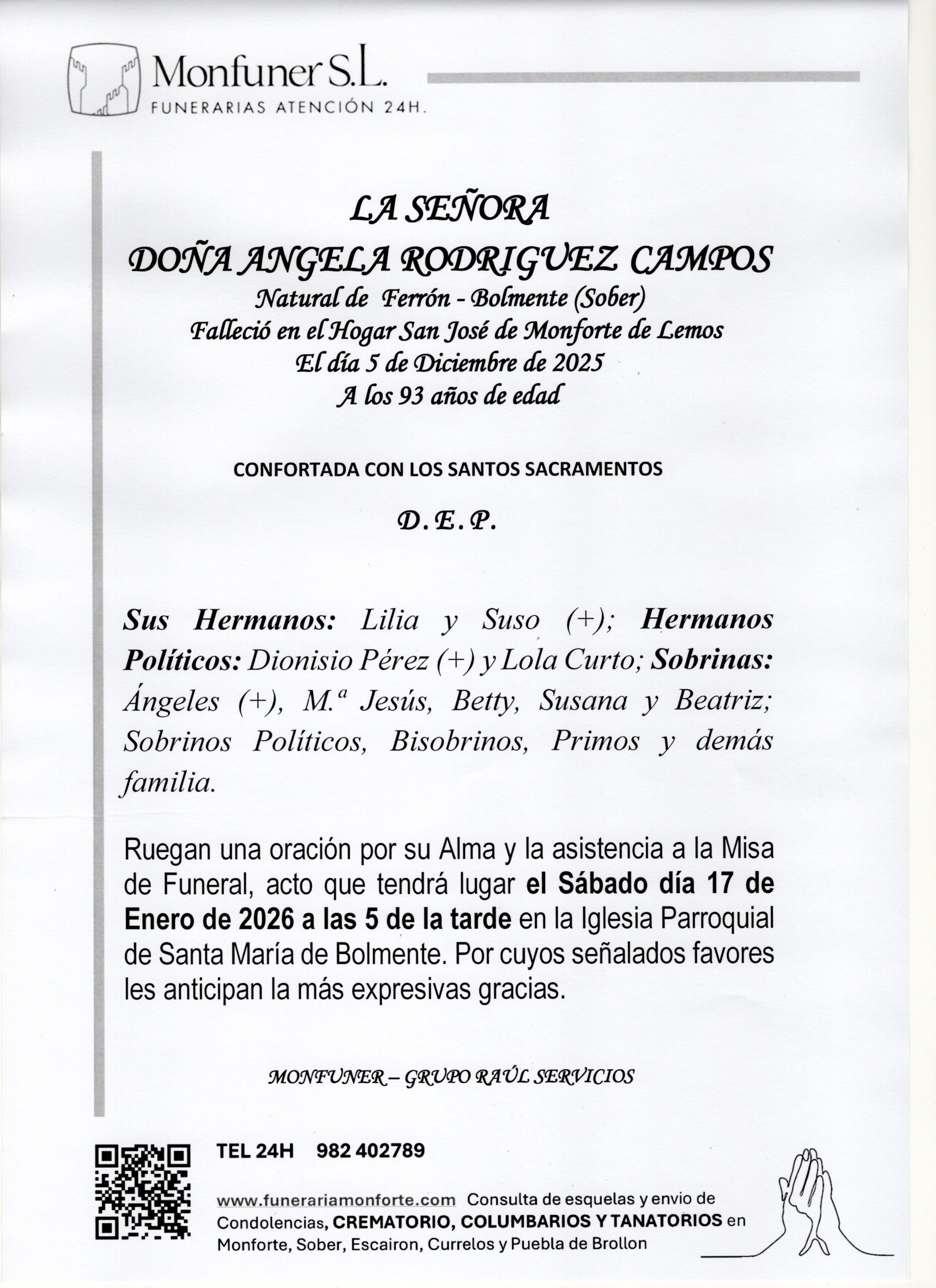 LA SEÑORA DOÑA ANGELA RODRIGUEZ CAMPOS