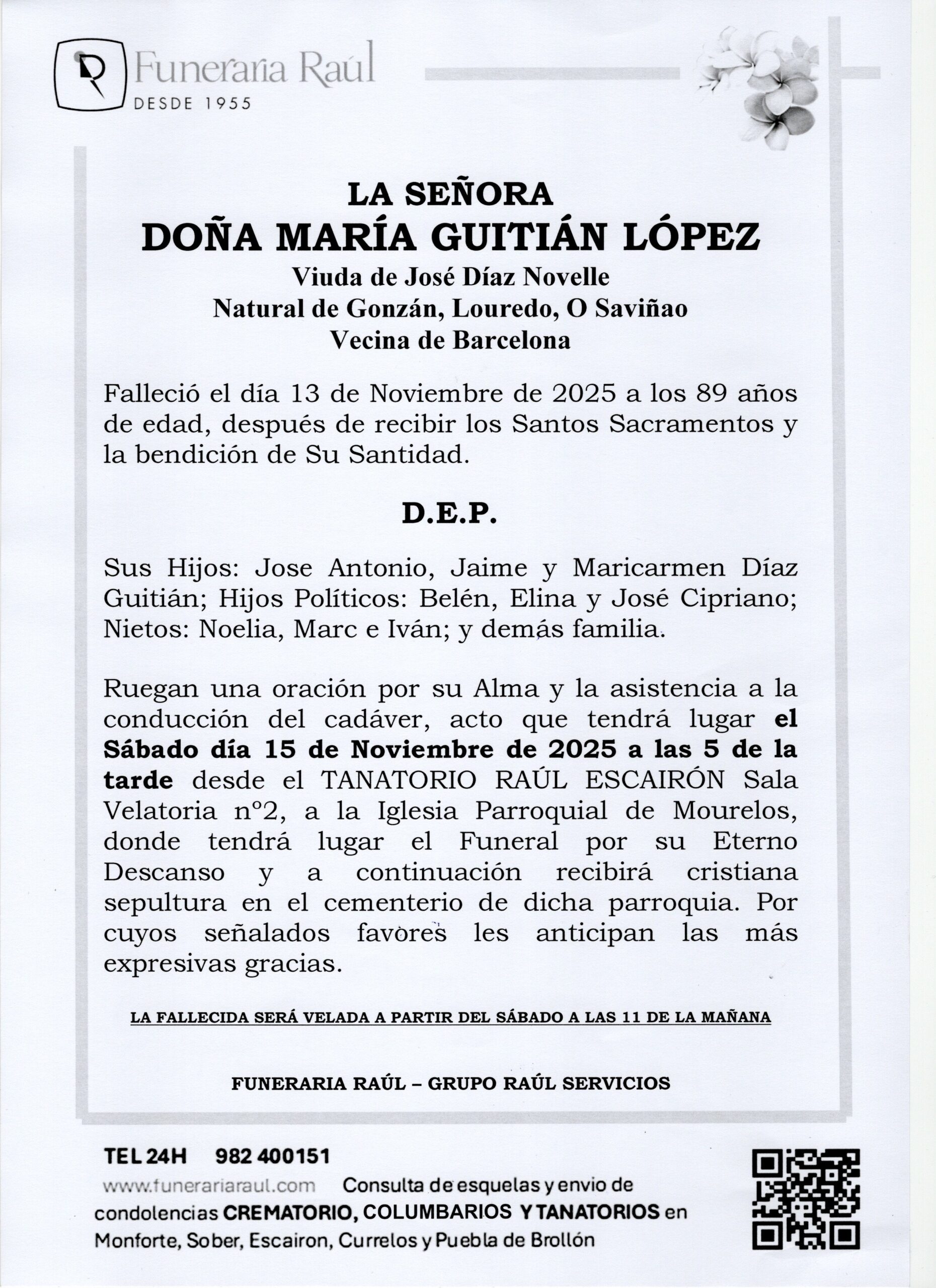 VELACION: TANATORIO RAUL ESCAIRON SALA Nº2