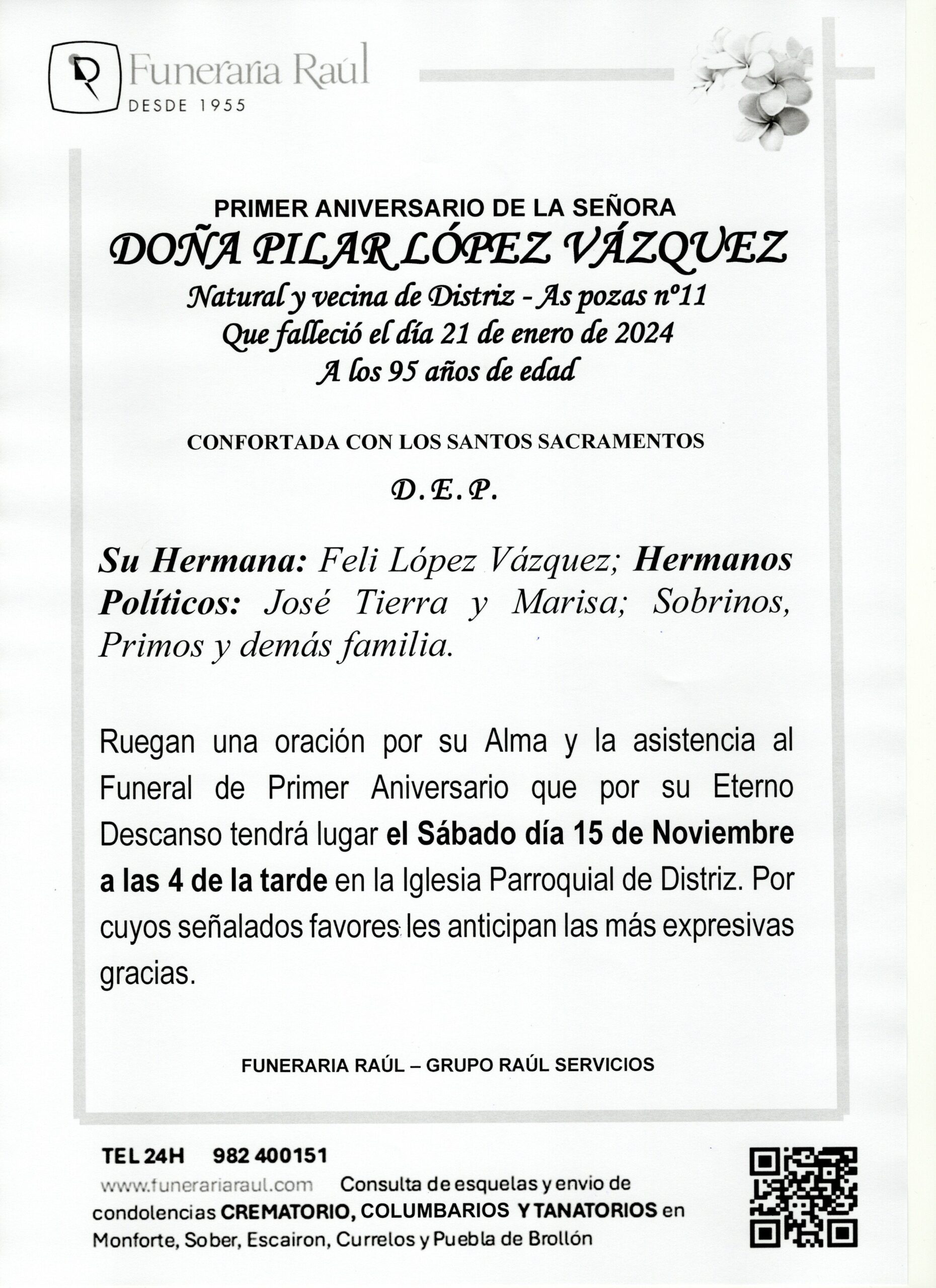 PRIMER ANIVERSARIO DE DOÑA PILAR LOPEZ VAZQUEZ